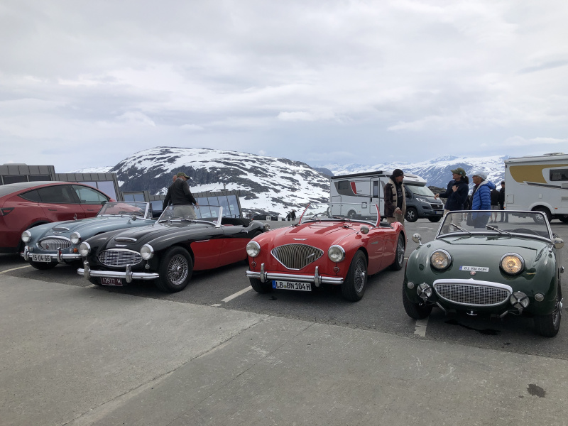 Also es scheint doch zu klappen, dass wir uns mit zwei Austin Healey Roadster (AH 100/1 Bj. 1954, AH Sprite MK I Bj. 1959) nach Geiranger Norwegen zum